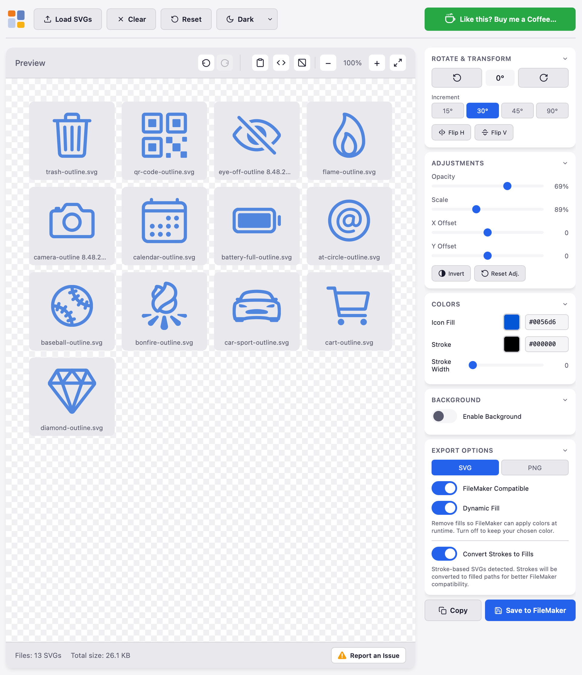 Announcing the release of Elemental SVG. This is a powerful and reliable SVG editor built from the ground up specifically for FileMaker Developers!